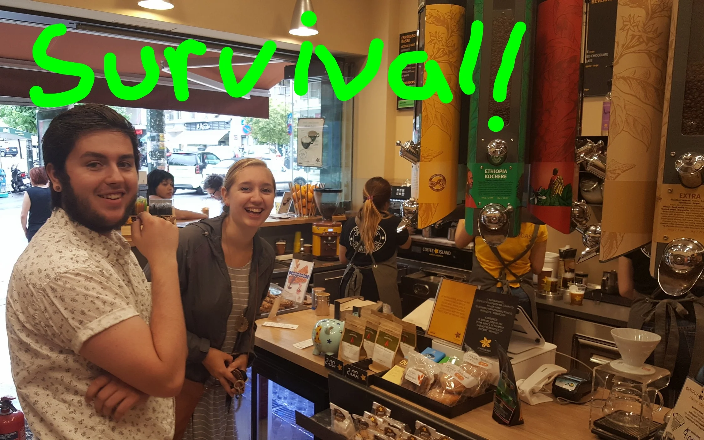 Coffee Island is a Greek coffee chain. Think Starbucks, only better, cheaper, more delicious—and decidedly Greek in friendliness. If I’m ever shipwrecked, I pray that God will see fit to wash me ashore on Coffee Island. Anyway, there was a Coffee Island near the The Hive. We were hesitant at first--not sure what to order and how to communicate. But I recognized cappuccino. And espresso. And only two euros? Hallelujah! Just hook up my IV now and keep it flowing. We were now speaking in the tongues of caffeinated angels!